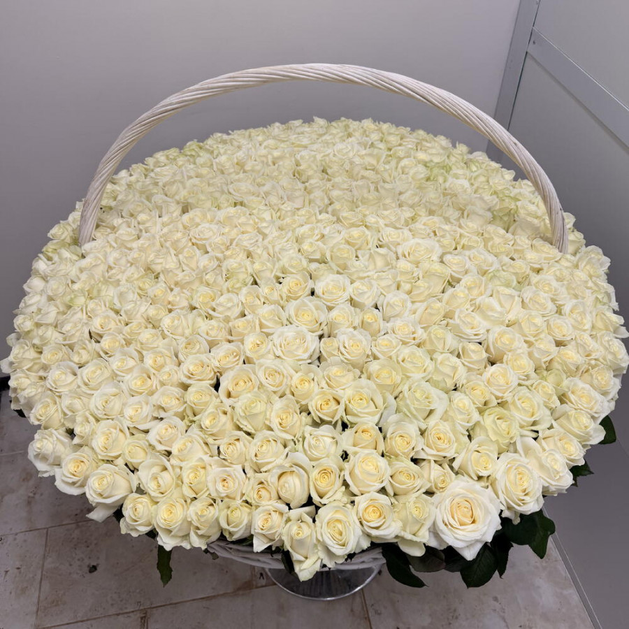 Букет из 501 белой розы в корзине «Нежность» в Мелеузе